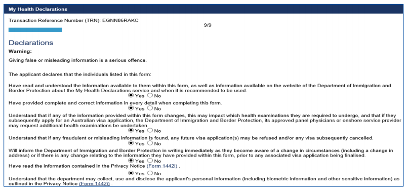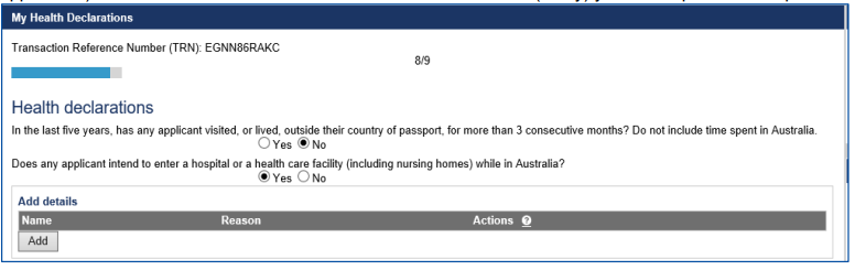 person the yes answer applies to, and for you to provide additional information.Note: You need to complete your health declaration questions ‘upfront’ (that is, prior to lodging your visa