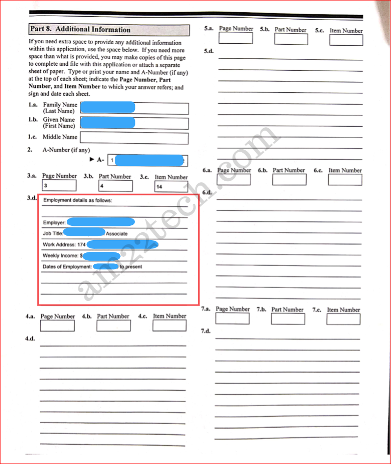 - Do write the employer details, salary, and employer address in the Additional Information section at the end of the form.