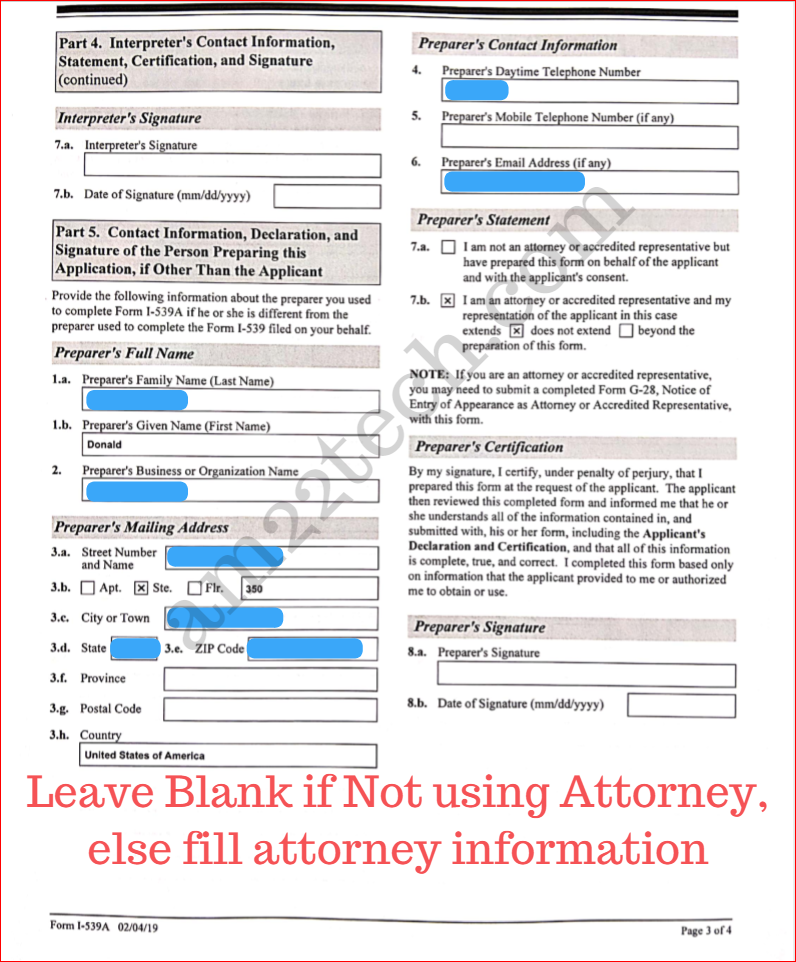 Form i539A – Page 4 can be left blank if there is no additional information to share.