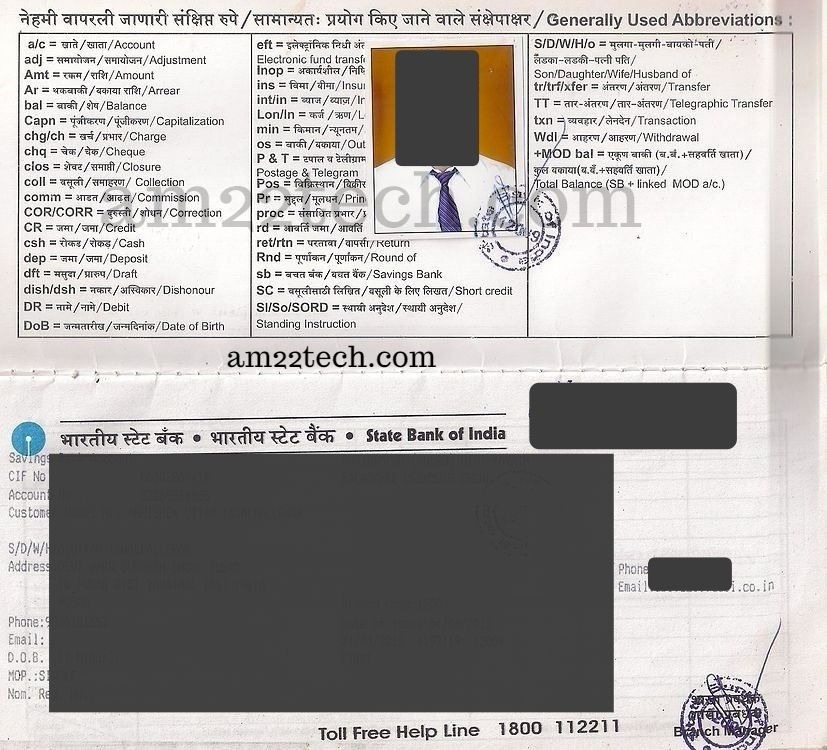 - Recent Bank Statement from Indian Government bank. Frontpage of the paper bank statement is required with your affixed photograph.
