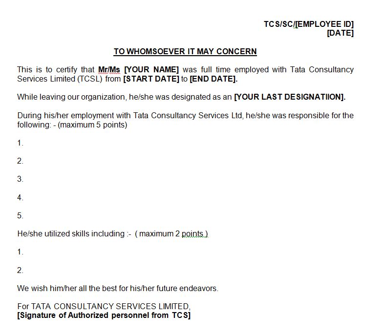 - Skill Experience Letter – This is required for a US green card or Australia and Canada PR application. You need to explicitly request it. TCS will not give it to you by default.