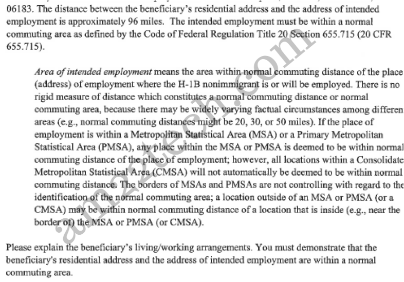 The USCIS argued that your work location should be close to your employer’s office and should be in reasonable commutable distance. There is no official USCIS approved mile range criteria to measure the commutable distance, but you should be able to prove that you have a valid reason to take long commutes daily.