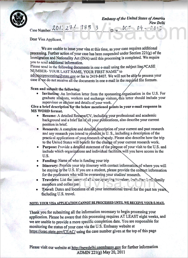 You can get admin processing form 221g issued in Canada or Mexico too. The risk of form 221g delay is always high if your paperwork is not complete.
