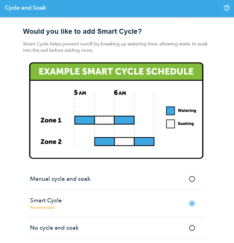 - All these times are managed automatically if you select the ‘Cycle and Soak’ feature in the Rachio app.